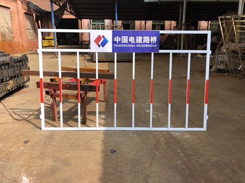 2、防護欄桿由二道橫桿及欄桿柱組成,上橫桿離地高度為1.2米,下橫桿桿離地高度為0.6米,立桿總長度1.7米,埋入地下0.5米,