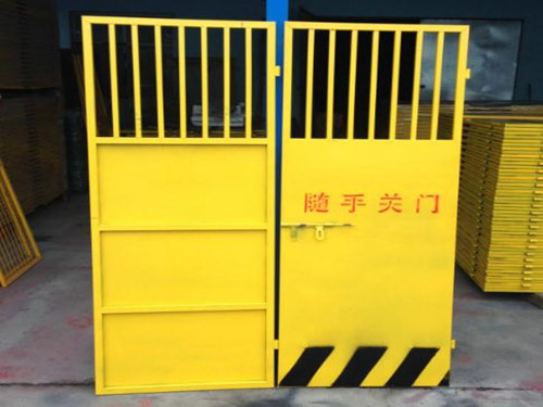 標(biāo)準(zhǔn)化卸料平臺安全防護門全部由鋼結(jié)構(gòu)組成。鋼材采用國家標(biāo)準(zhǔn)材料,制作嚴(yán)格按圖施工,尺寸正確,焊接點牢固,達(dá)到安全防護之目的,電梯安全門采用檸檬黃色,門下部檔架板采用黃、黑間隔。采用氬弧焊結(jié),強度高,質(zhì)量穩(wěn)定,強力摔、扭不脫焊。